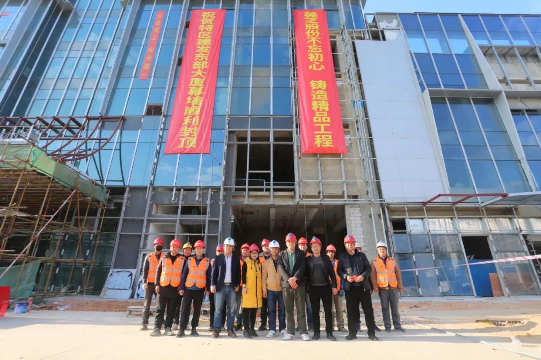 2021年1月16日,美芝股份承接的特區(qū)建發(fā)·東部大廈幕墻正式封頂,項目現(xiàn)場舉行了簡單而熱烈的封頂儀式。此次幕墻的順利封頂,標(biāo)志著深圳市深汕特別合作區(qū)(以下簡:深汕特別合作區(qū))第一座集總部辦公和商業(yè)商務(wù)配套為一體的超高層綜合體建筑外立面形象工程完美收官,刷新了深汕特別合作區(qū)幕墻天際線,為合作區(qū)建設(shè)增光添彩。